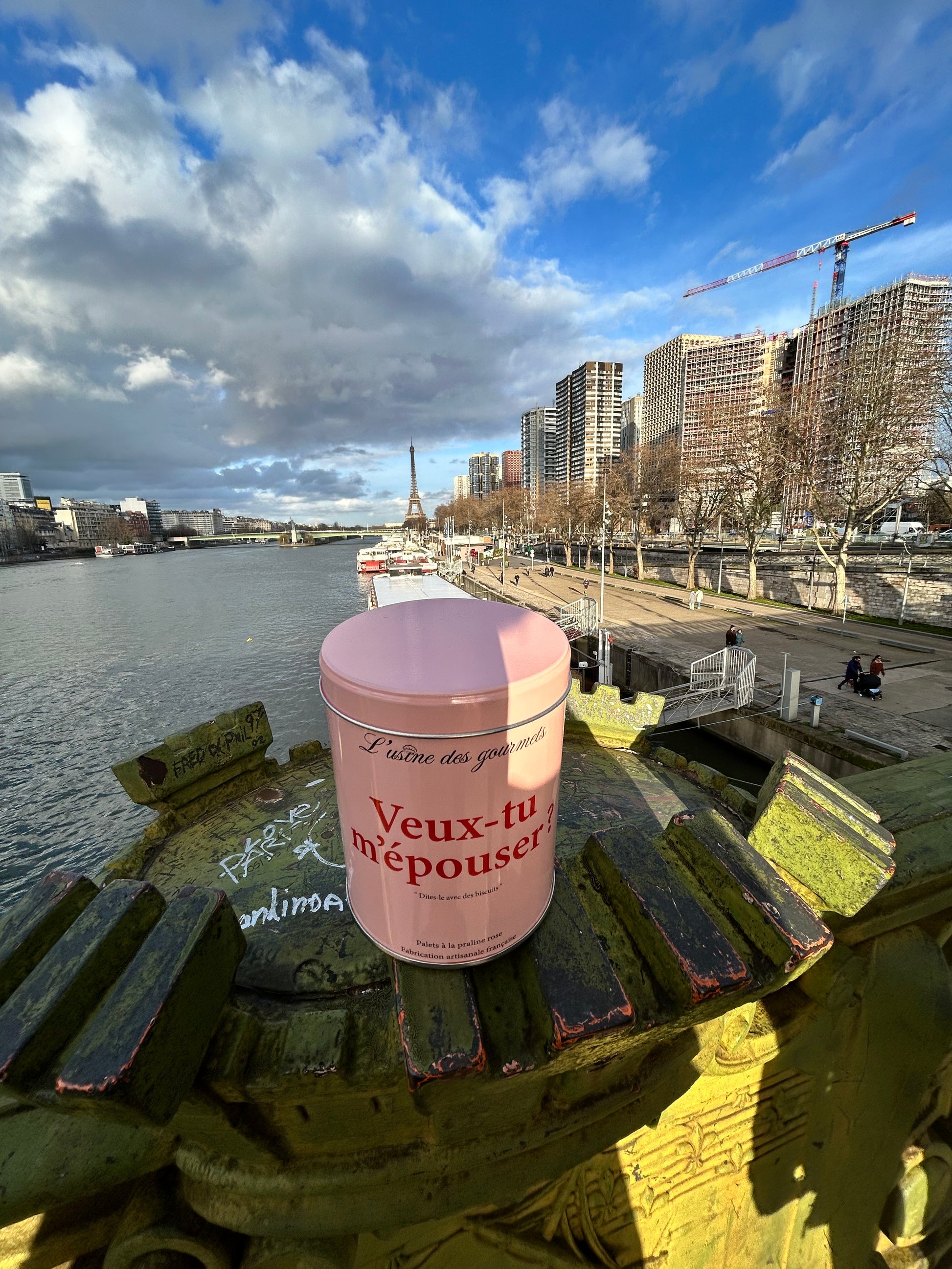 Dans la boîte "Veux-tu m'épouser ?", dégustez de délicieux palets à la praline rose.